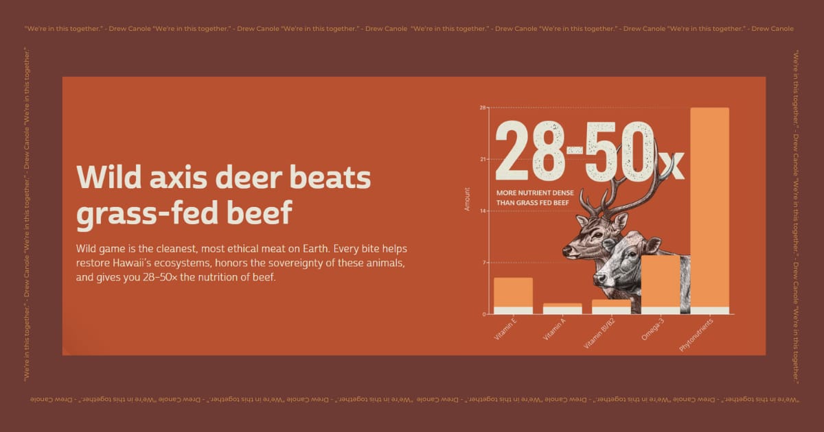Real Provisions makes jerky from wild Hawaiian axis deer with 10% organ meat in every bite. Five ingredients: wild venison, liver, heart, salt, vinegar. 72 grams of protein per pack; the most nutrient-dense jerky I've found.